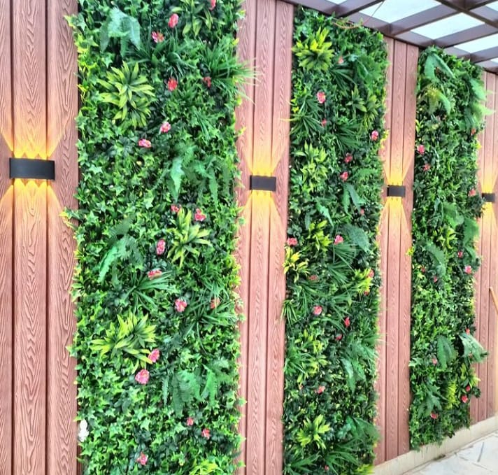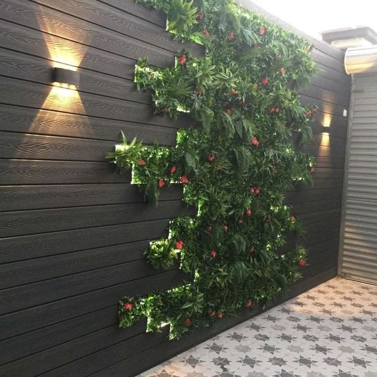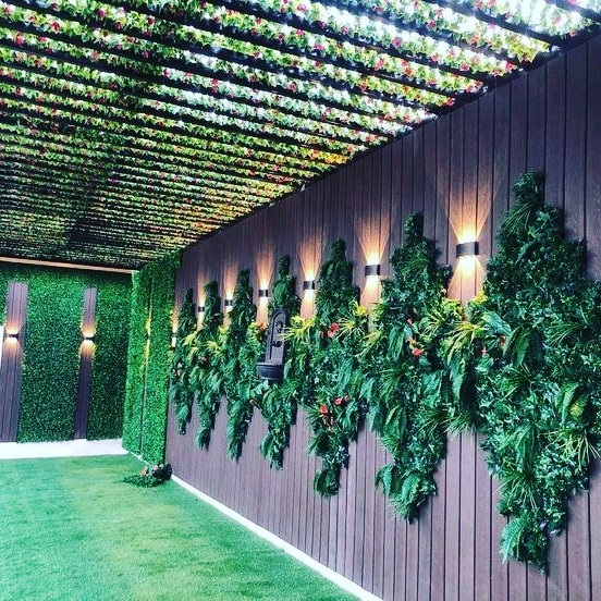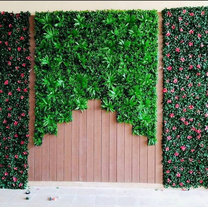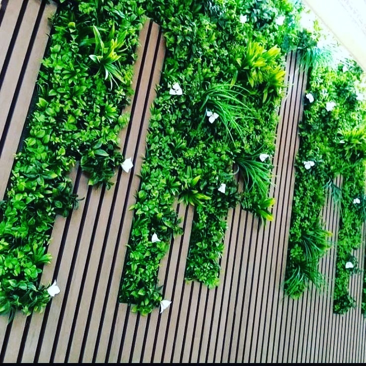 تصميم جداري مع خشب يجمع بين الطبيعة والدفء في مزيج فني رائع. يمكنك استخدام العشب الجداري مع ألواح الخشب لتزيين الجدران في الحوش أو الجلسات الخارجية، مما يعطي إحساساً بالفخامة والراحة في آنٍ واحد. هذا النوع من التصميم يناسب الفلل والمنازل الحديثة في جدة.
